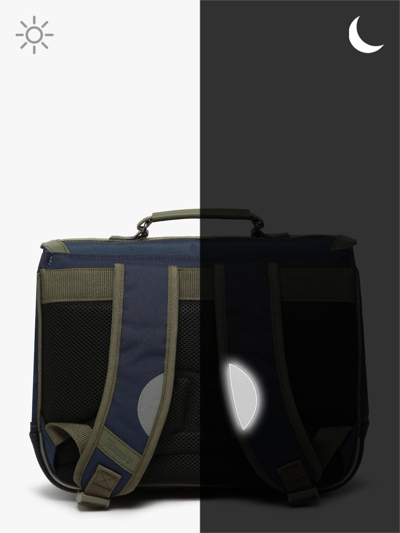 35 cm - 12 liter - 0.65 kg ~ Deze TANN'S boekentas van gerecycled polyester is ontworpen voor jongens van 3 tot 6 jaar. Licht en praktisch, hij heeft een hoofdvak dat een A4-map, een schrift tot formaat 24x32 cm en een ringmap van 17x22 cm kan bevatten. Binnenin is er een ritstas om kleine spullen veilig op te bergen. Aan de buitenkant zijn er twee voorvakken, ideaal voor accessoires. De klepsluiting met metalen gesp zorgt voor eenvoudig en veilig gebruik. Verstelbare schouderbanden garanderen een goede pasvorm op de rug, en het handvat maakt comfortabel dragen in de hand mogelijk. Een duurzame, ergonomische boekentas, perfect aangepast aan jonge kinderen.