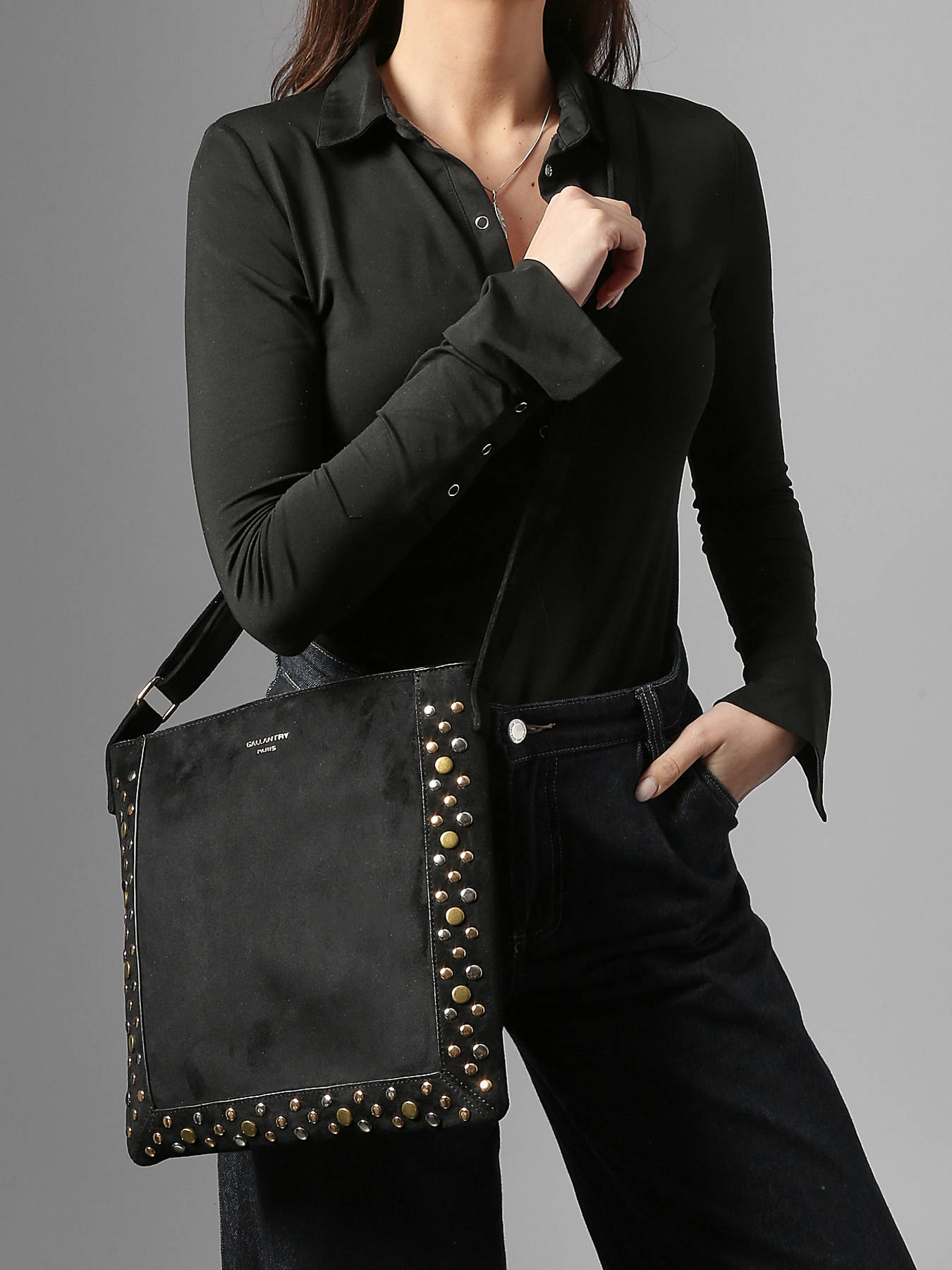 Een stijlvolle Cross body tas velvet studs uit de Velvet studs collectie van het merk Miniprix, die u gekruist kunt dragen. Keuze bij de vleet! Stijlvol, compact en ook praktisch: deze cross body tas heeft het allemaal! De tas heeft een optimale indeling, perfect om jouw persoonlijke spulletjes in op te bergen. De schouderriem is verstelbaar, en kan gekruist of lang over de schouder gedragen worden. Modieus én handenvrij de dag door!